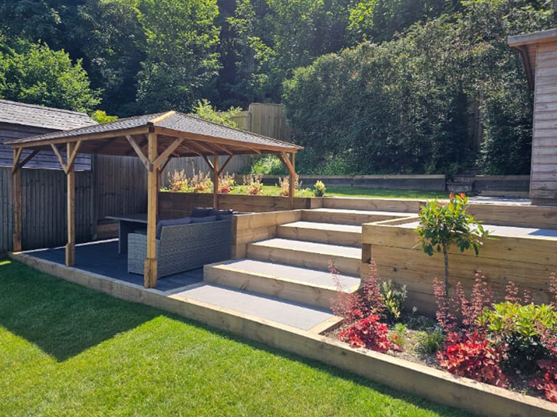 New patio area with retaining sleepers